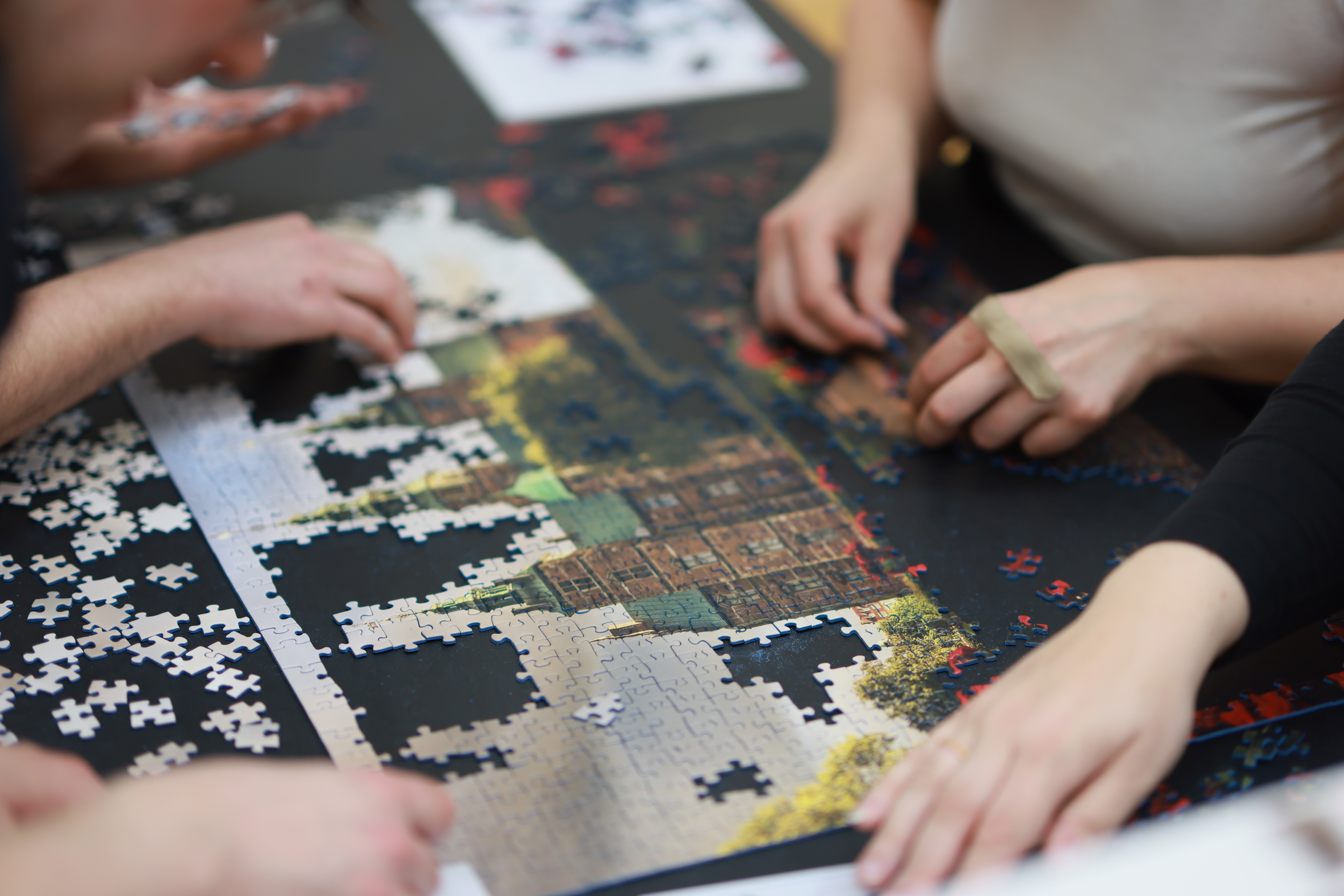 Saml et hold på 4–6 personer og dyst om at lægge så mange puslespil som muligt på 10 timer.