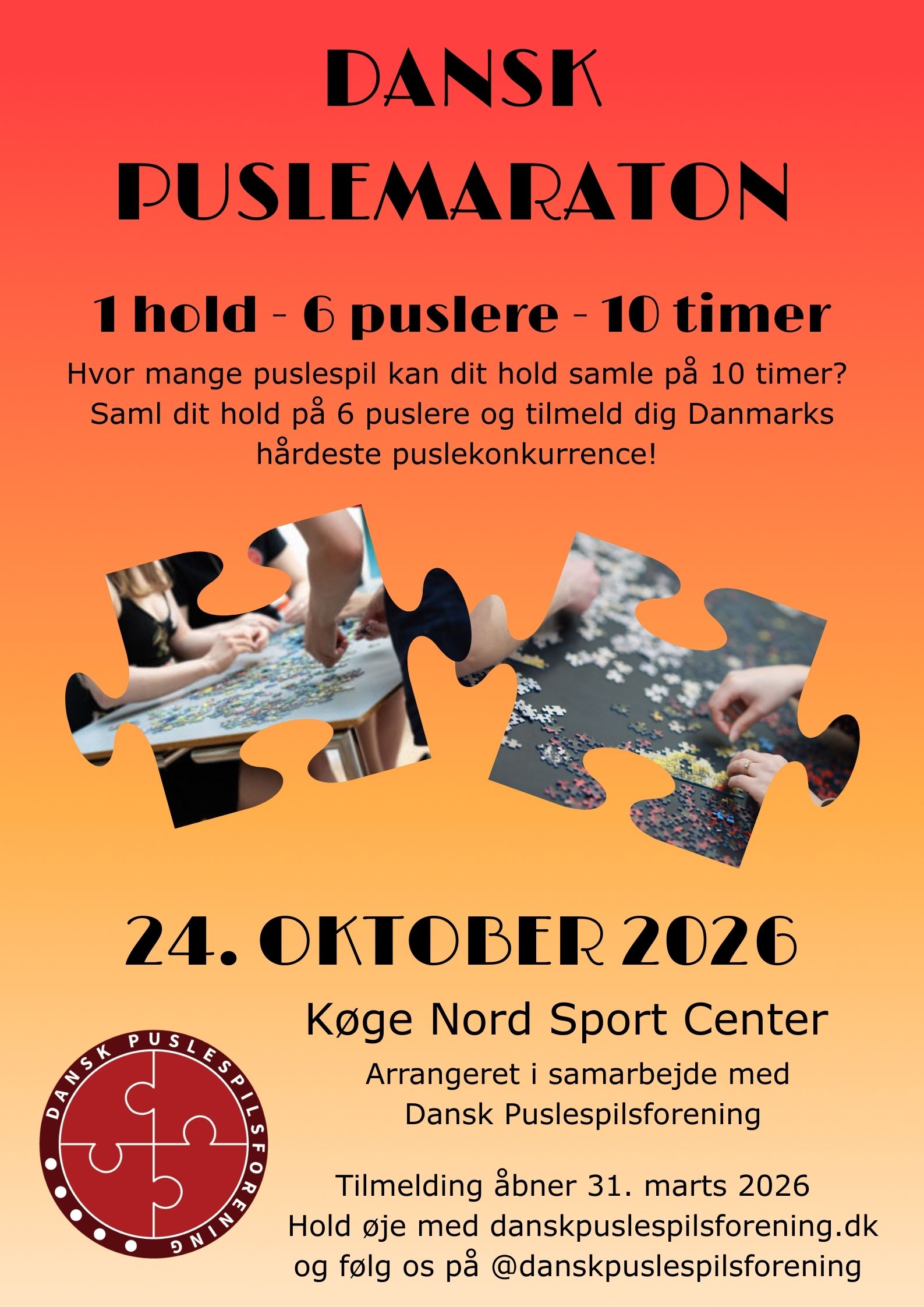 Lørdag d. 24. oktober 2026 afholdes det første danske puslemaraton
